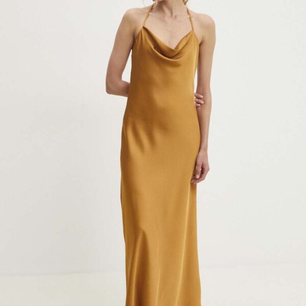 Model Nou de rochie culoarea auriu, maxi, drept