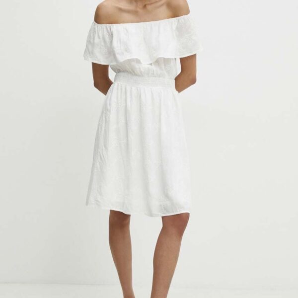 Model Nou de rochie in bumbac culoarea alb, ini, evazati