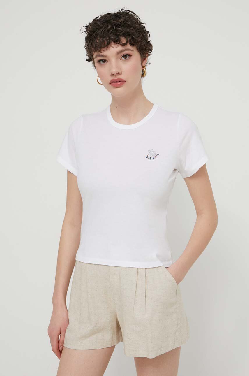 Abercrombie & Fitch tricou din bumbac femei, culoarea bej