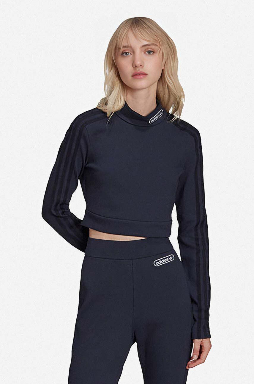 adidas longsleeve Cropped LS HN femei, culoarea bleumarin, cu turtleneck HL0056-navy