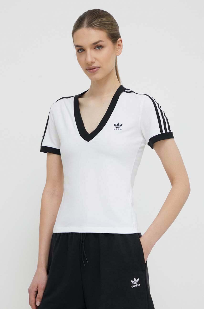 adidas Originals tricou 3-Stripe V-Neck Tee femei, culoarea alb, IR8114