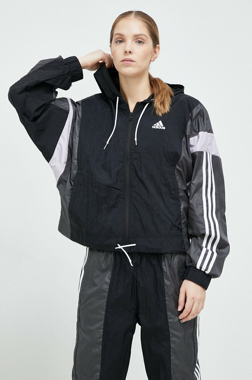 adidas trening femei, culoarea negru. Compleu de trening din colectia adidas. Model confectionat din material ornamentat. #NAME?