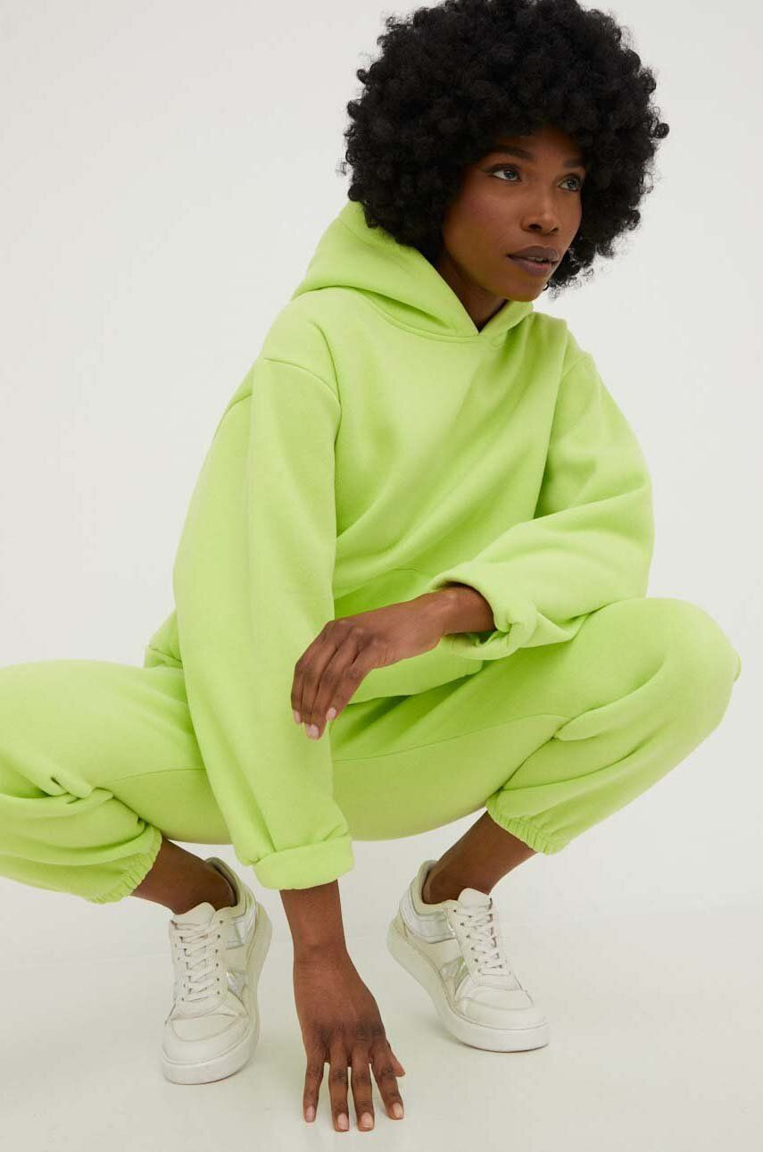 Answear Lab trening femei, culoarea verde. Compleu de trening din colecaia Answear Lab confecaionat din tricot confortabil. Model cu un centru moale captusit pentru moliciune si caldura suplimentara. – Fason lejer. – Maneca lunga. – Linia umerilor lasata. – Model cu gluga. – Buzunar in fata. – Model captusit – Talie ??nalta cu banda elastica previne alunecarea ??n timpul miscarii. – In talie snururi. – Buzunare oblice. – Lungimea manecii (masurat