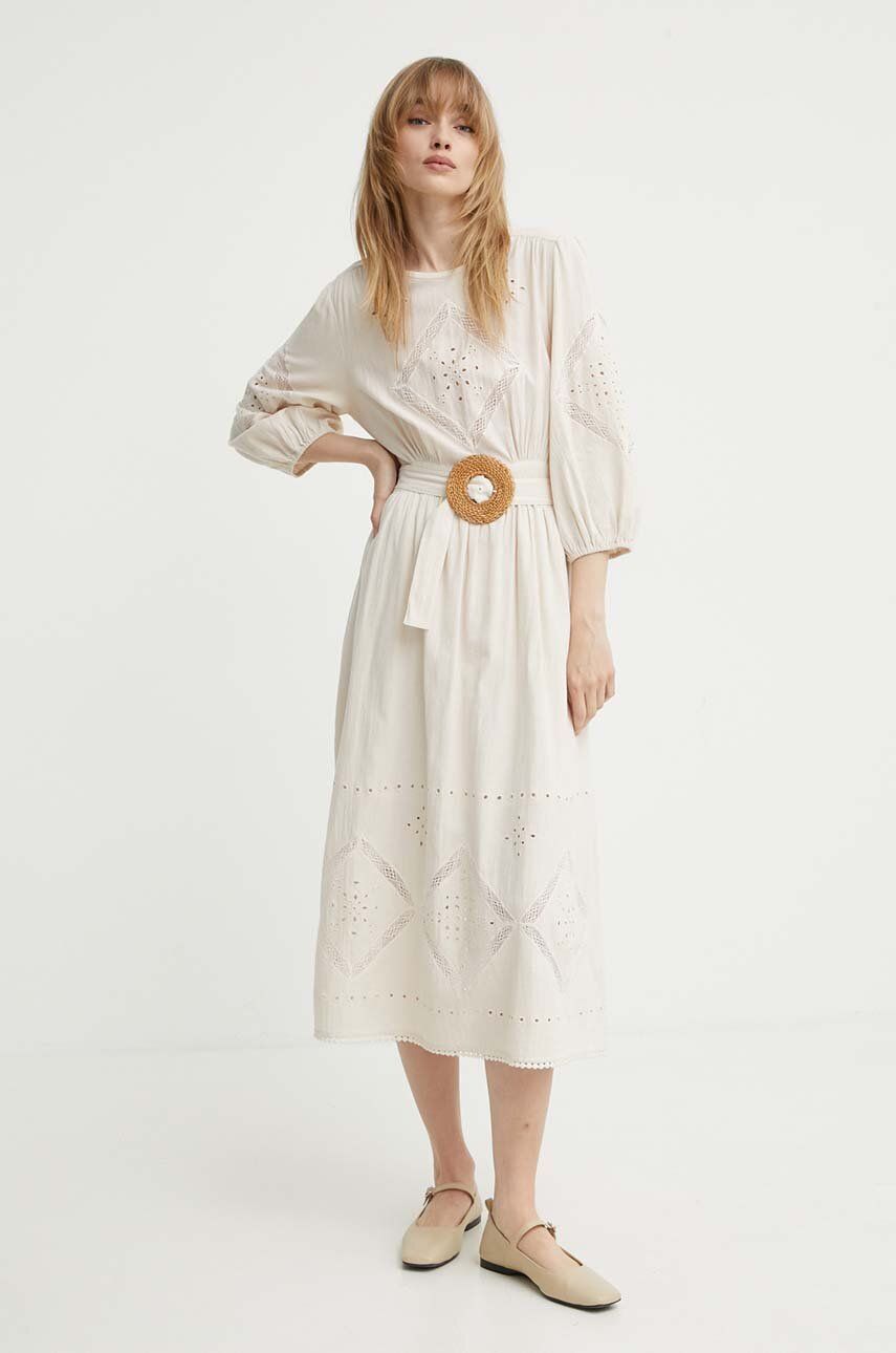 BA&SH rochie in bumbac ELinA culoarea bej, midi, evazati, 1E24ELVI