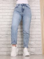 Blugi dama Boyfriend Albastri Adelsa.Cea mai mare selectie de blugi pentru femei diverse croiuri si modele: slim fit, regular, cu talie inalta (high waist), boyfriend, mom fit.