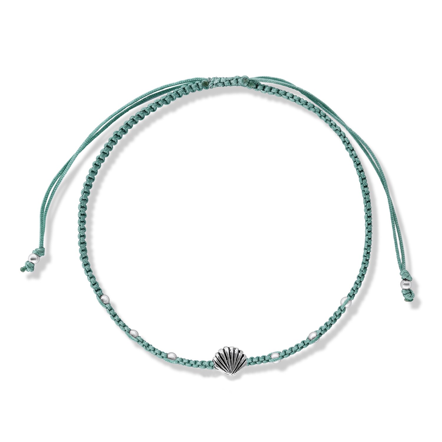 Bratara cu snur Green Shell. Material: Argint 925/ Snur textil Placaj: Rodiu Inchidere: Fara inchidere (reglabila) Dimensiuni element central: 5.35mm Piatra: Fara pietre