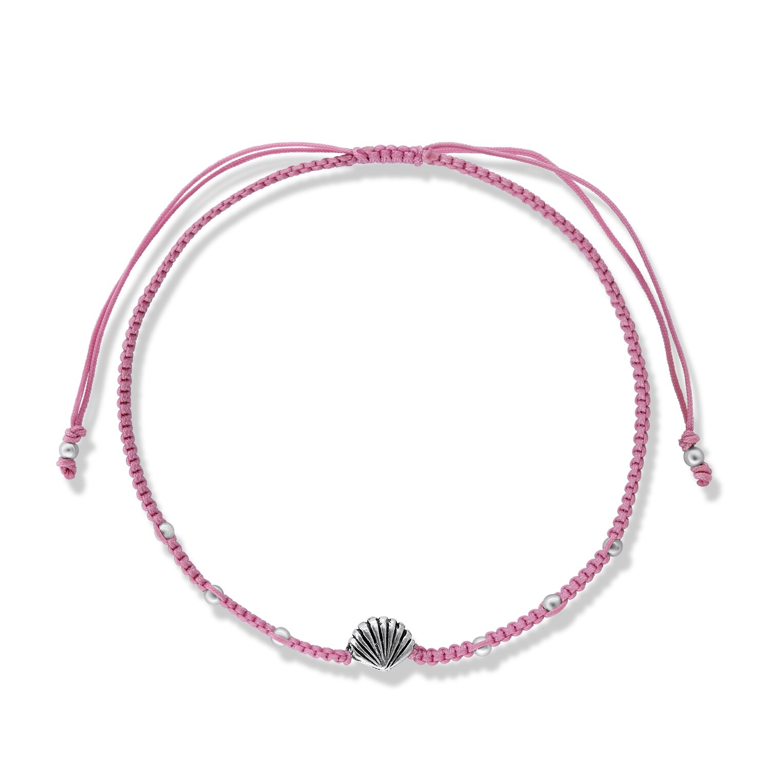 Bratara cu snur Pink Shell. Material: Argint 925/ Snur textil Placaj: Rodiu Inchidere: Fara inchidere (reglabila) Dimensiuni element central: 5.35mm Piatra: Fara pietre