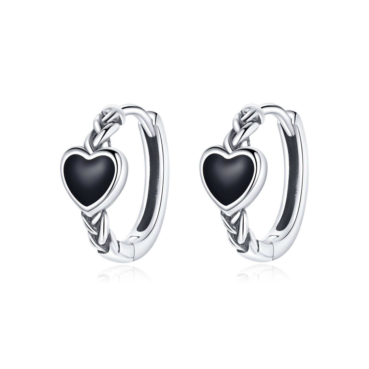 Cercei din argint Black Heart Hoops. Material: Argint 925 Placaj: Rodiu/ Email Inchidere: Tortita Dimensiune cercei: 12.76 X 5.52 mm Piatra: Fara pietre