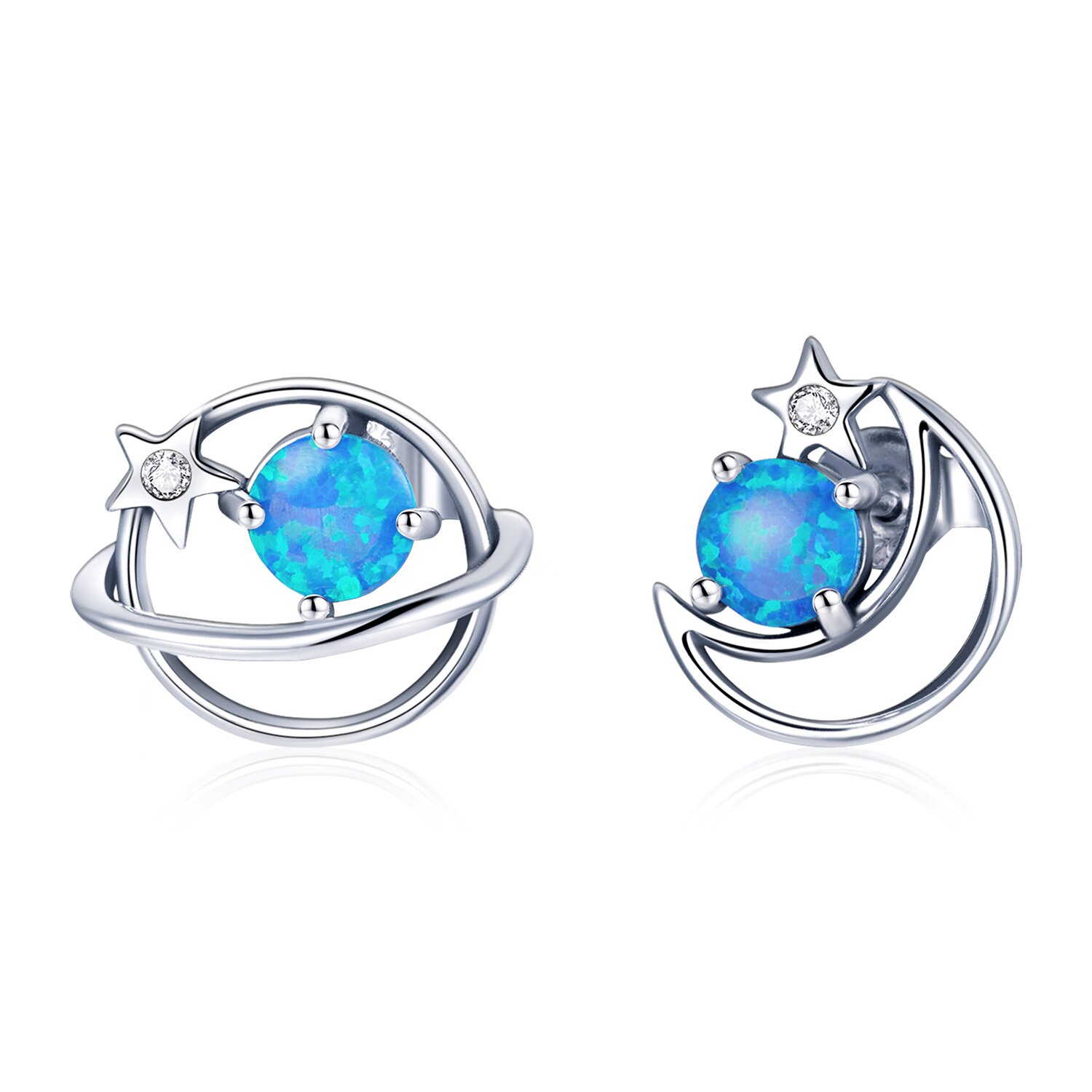 Cercei din argint Blue Moon and Star
