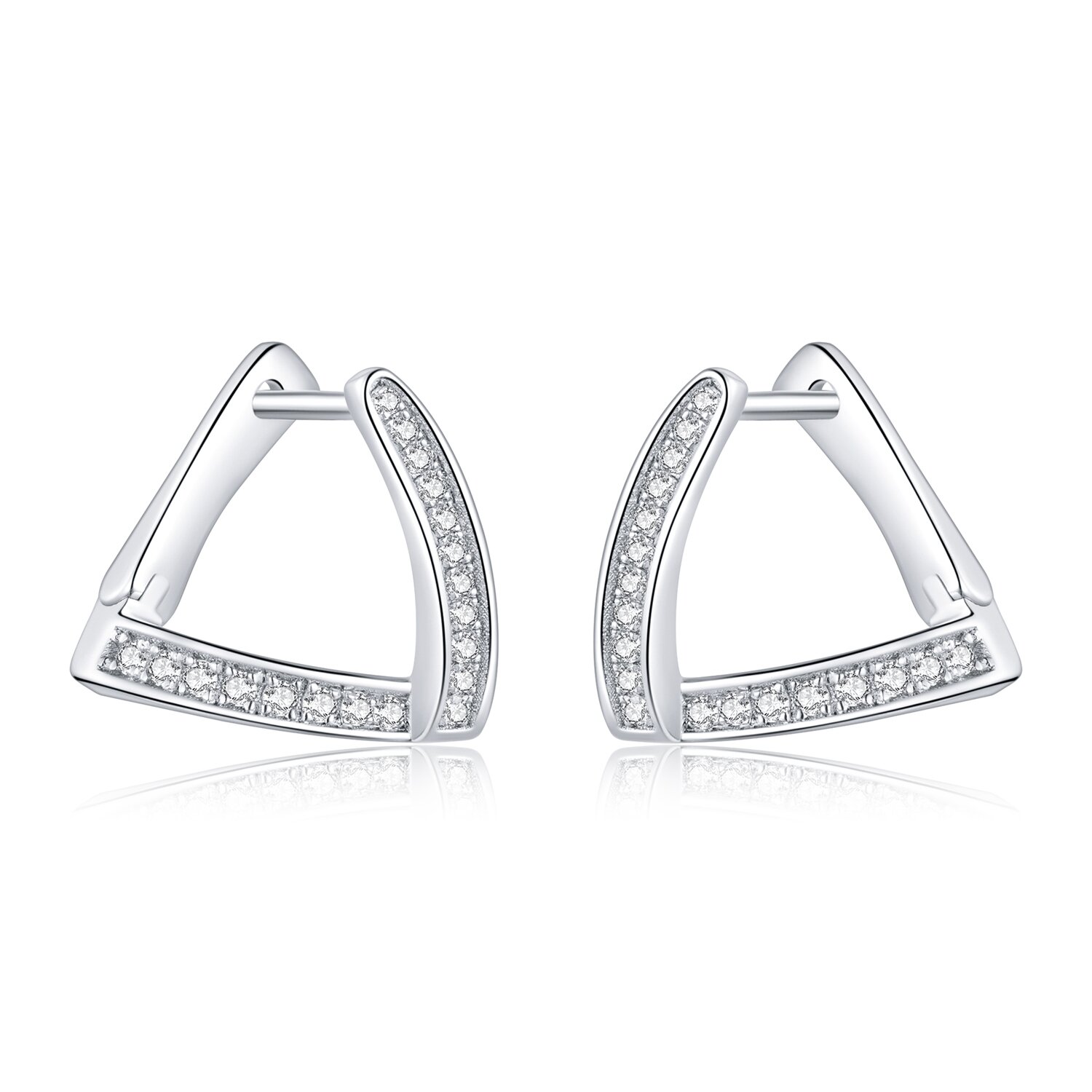Cercei din argint Geometric Crystal Hoops. Mărimi Material: Argint 925 Placaj: Rodiu Inchidere: Tortita Dimensiune cercei:  11.28 mm Piatra: Zirconiu