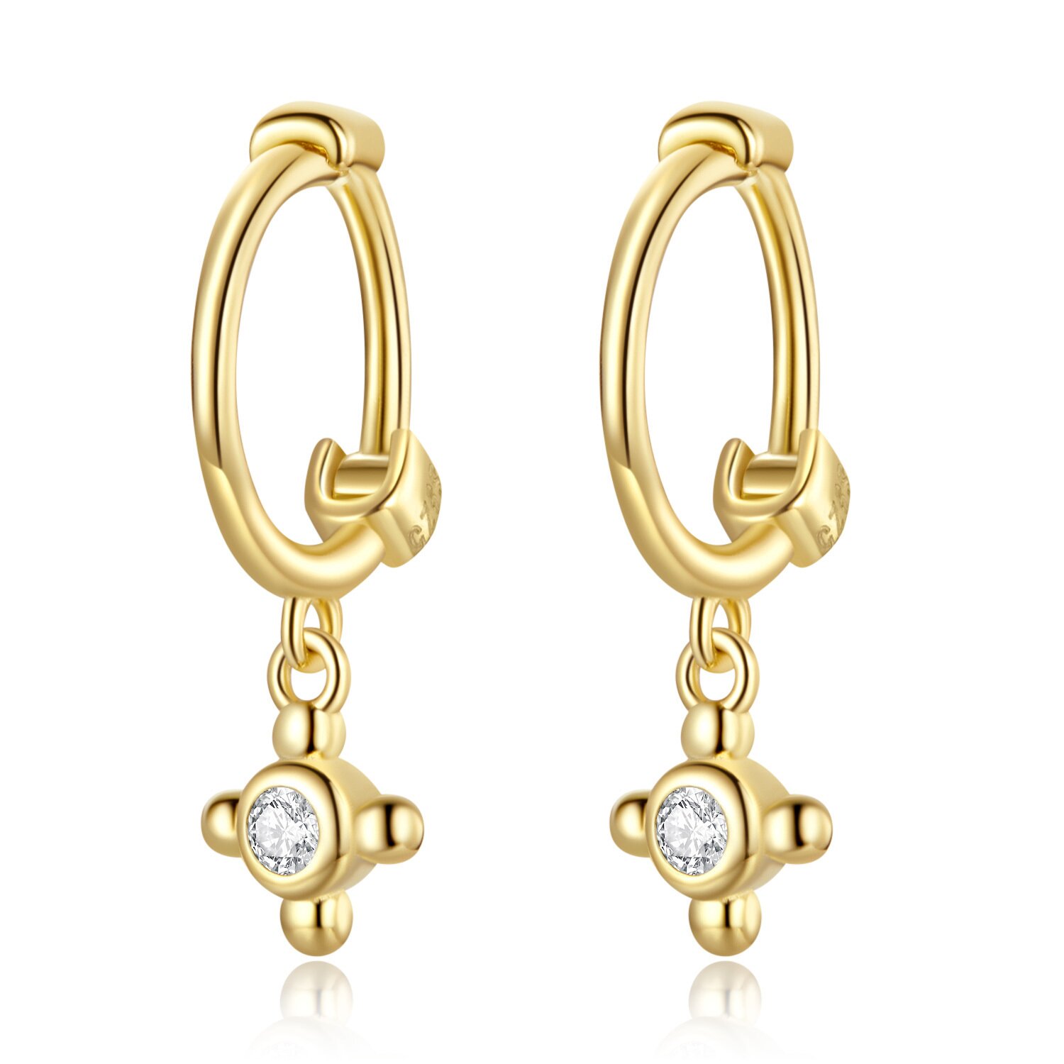 Cercei din argint Golden Drop Spark. Material: Argint 925 Placaj: Aur 14K Inchidere: Tortita Dimensiune cercei: 4,50 mm x 4,80 mm x 9,00 mm Greutate: 0,87 g Piatra: Zirconiu