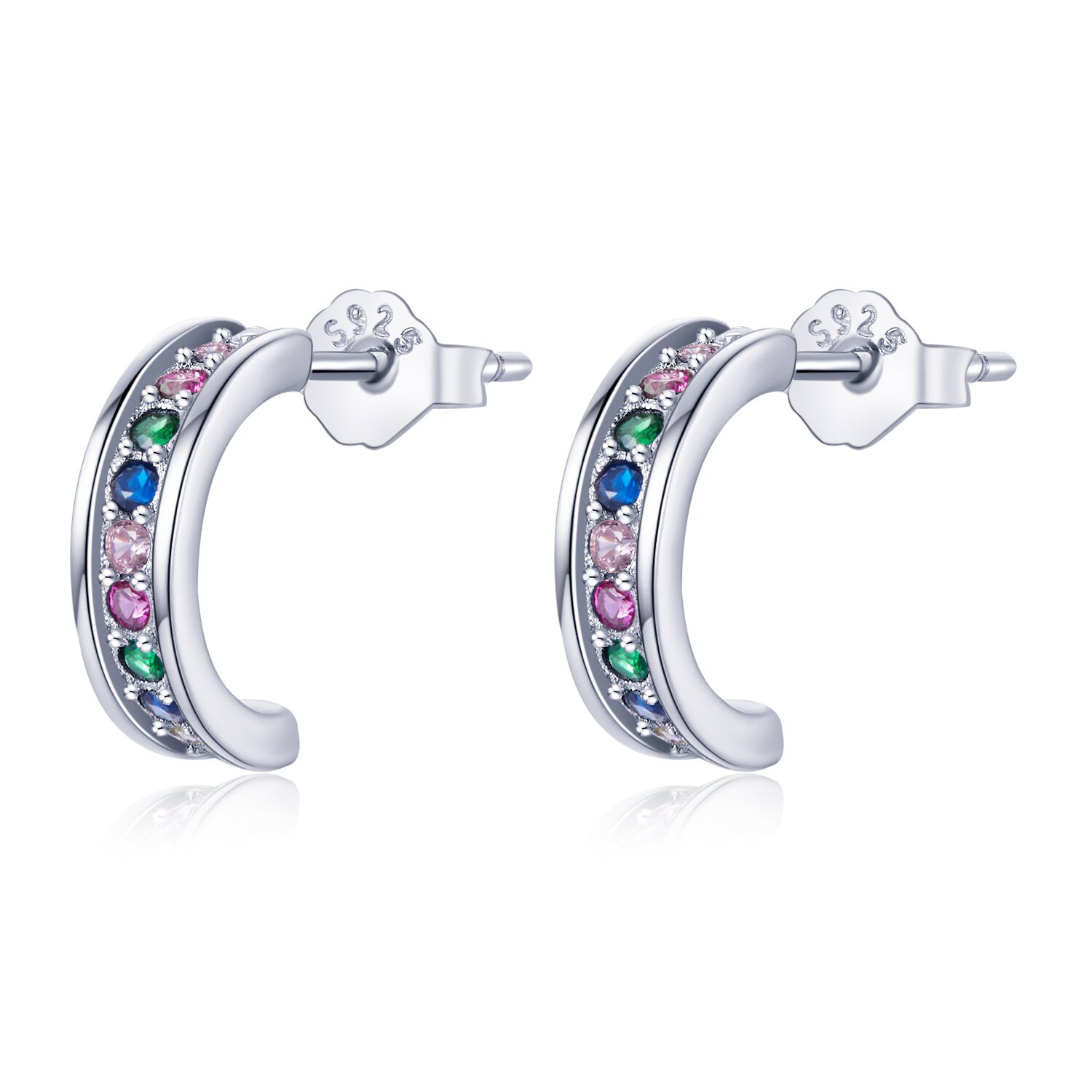 Cercei din argint Silver Multi Colors. Mărimi Material: Argint 925 Placaj: Rodiu Inchidere: Tija si fluturas Dimensiune cercei: 10,40 mm x 3,00 mm x 1,10 mm Piatra: Zirconiu