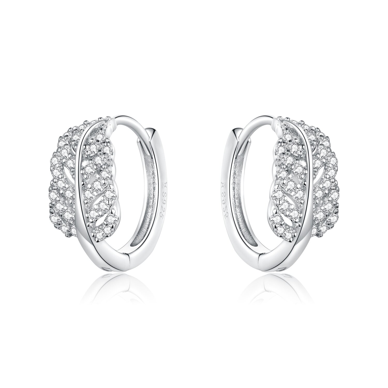Cercei din argint Sparkling Leaves Hoops