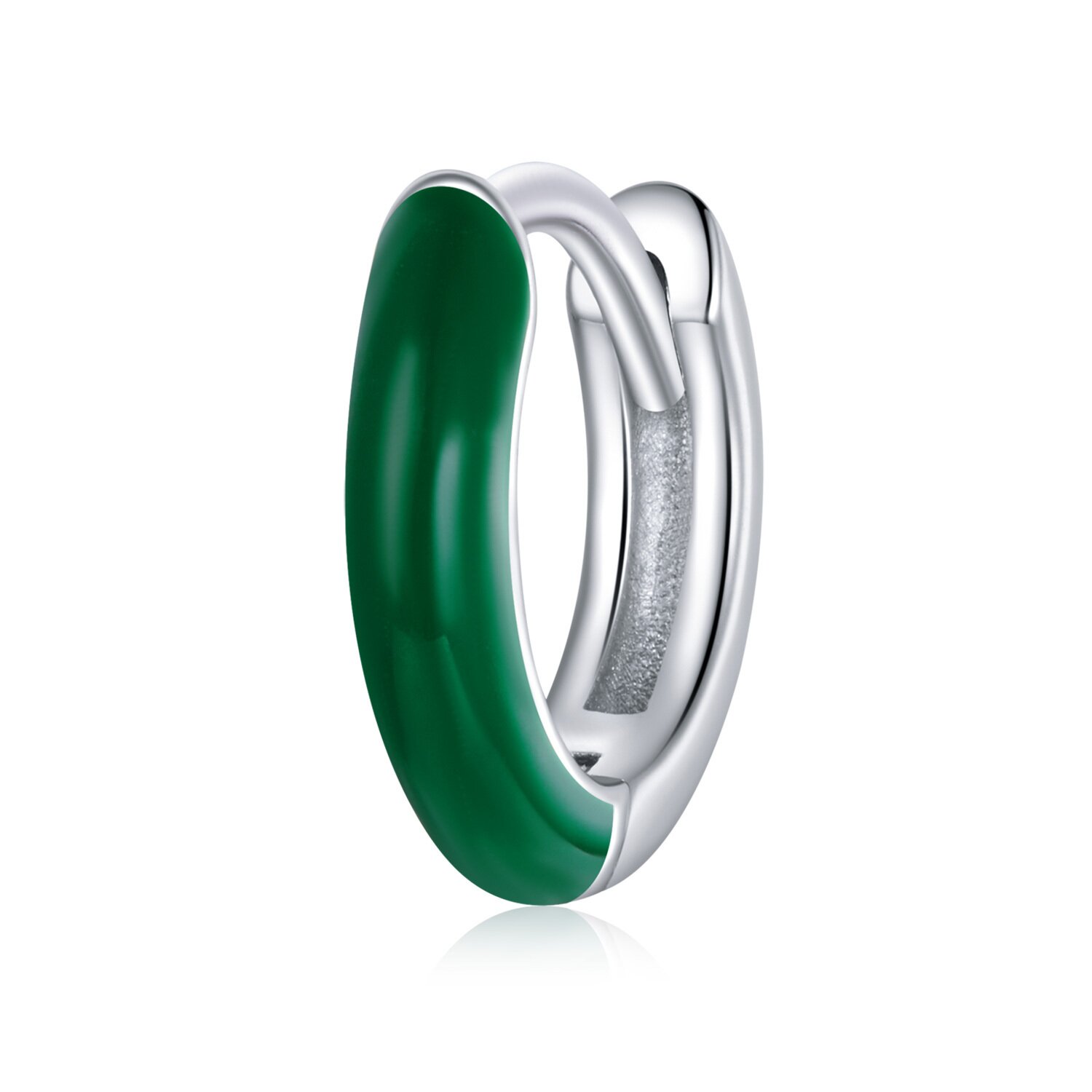 CERCEL din argint Green Email. Mărimi Material: Argint 925 Placaj:Rodiu/ Email Inchidere: Tortita Dimensiune cercei: 9.61 X 2.03 mm Piatra: Fara pietre Produsul se achizitioneaza la BUCATA, NU in pereche!