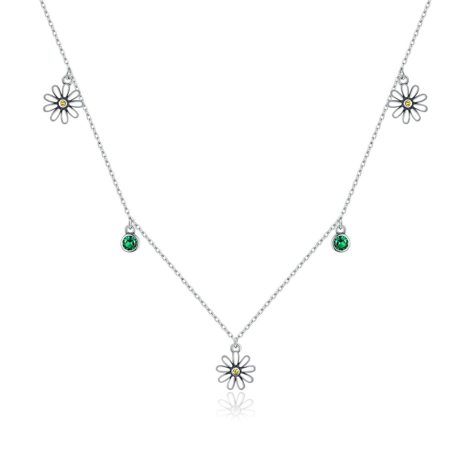 Colier din argint Green Daisy Crystals. Mărimi Material:Argint 925 Placaj: Rodiu Lungime lant: 45 cm Inchidere lant: Carabina Piatra: Zirconiu