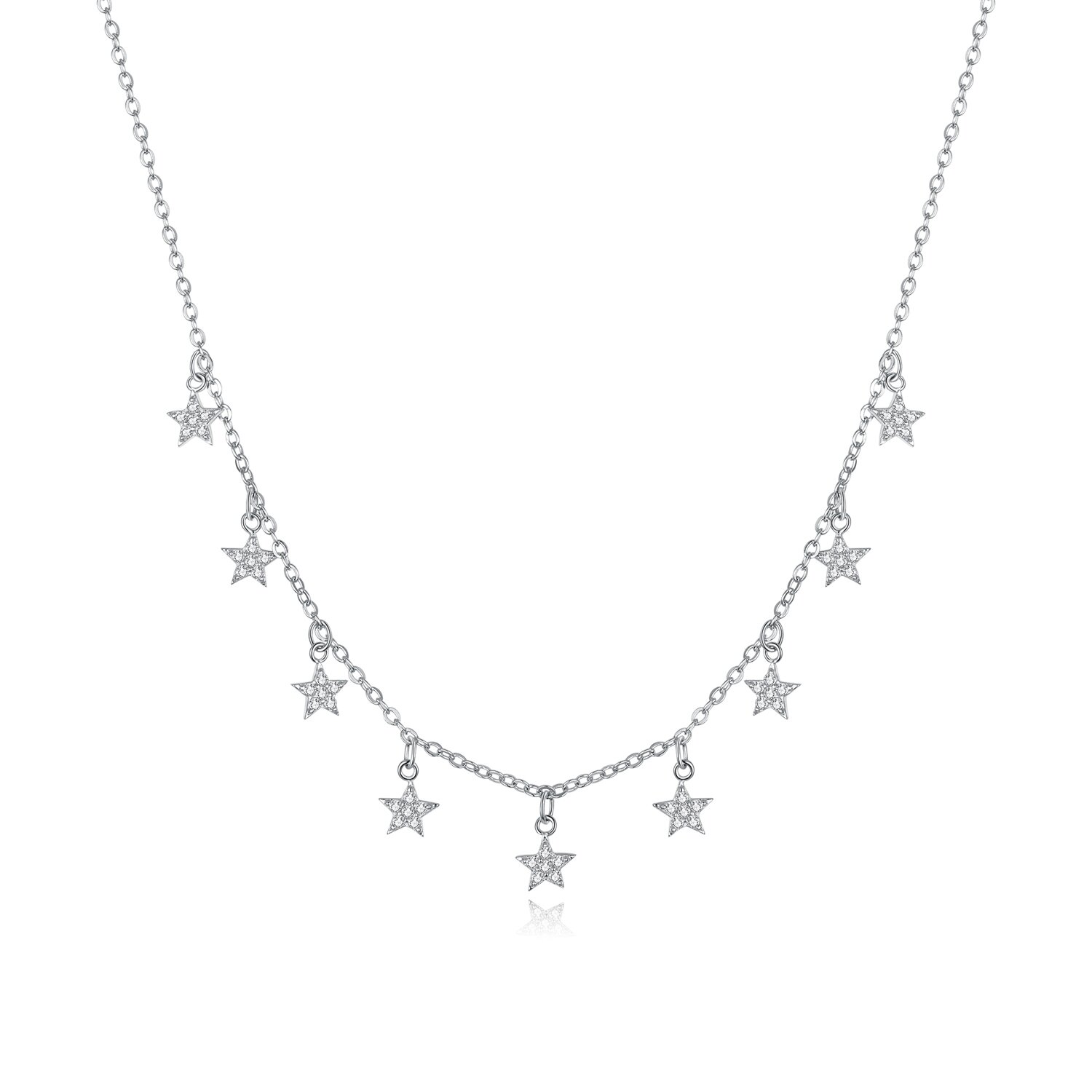 Colier din argint Little Stars. Material: Argint 925 Placaj: Rodiu Lungime lant: 45 cm Inchidere lant: Carabina Piatra: Zirconiu