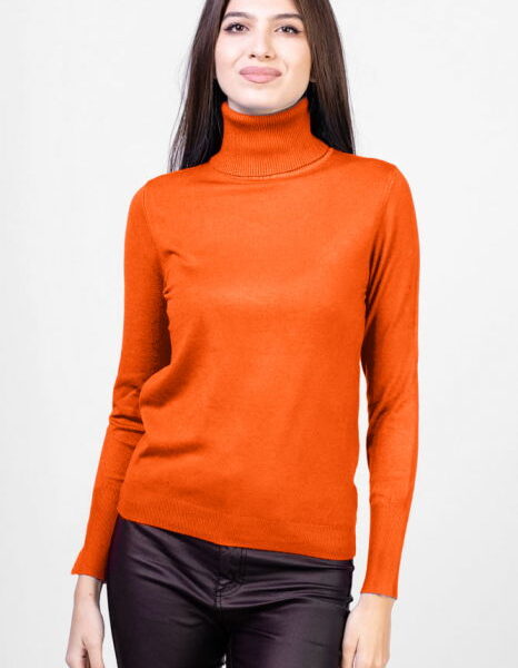Helanca masura mai mare, din tricotaj cu guler inalt, portocaliu