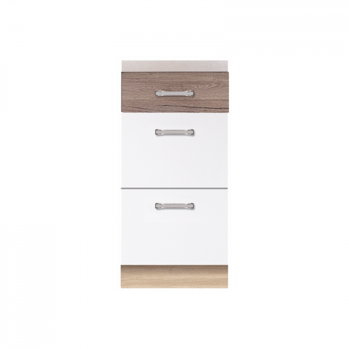 Corp inferior 40 ECO-8D, 3 sertare, corp stejar sonoma, fronturi alb lucios + stejar sanremo, 40x51x82 cm