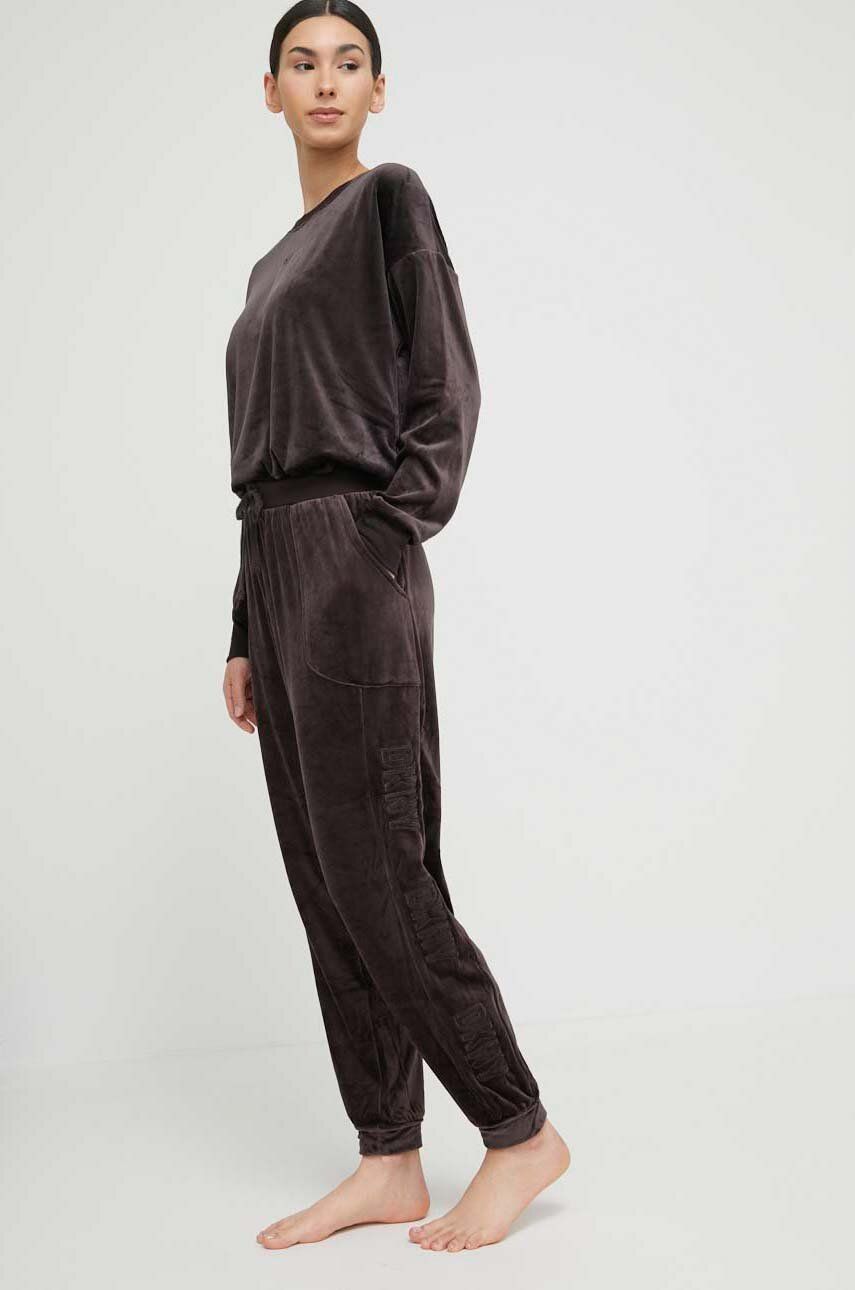 Dkny trening de lounge femei, culoarea maro. Set trening lounge din colectia Dkny. Model confectionat din tricot. – Fason lejer. – Decolteu rotund. – Linia umerilor lasata. – Finisaj din manseta. – Elastic in talie cu snururi. – Buzunare oblice. – Confectionat din velur. – Material elastic. – Lungimea manecii (masurata de la decolteu): 81 cm. – Lungimea: 57 cm. – Lat