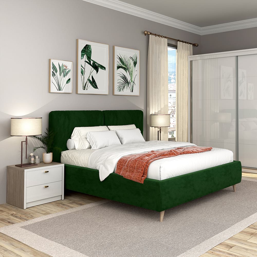 Dormitor MONTELLO 1, Oak, Alb Gloss, pat tapitat catifea Verde