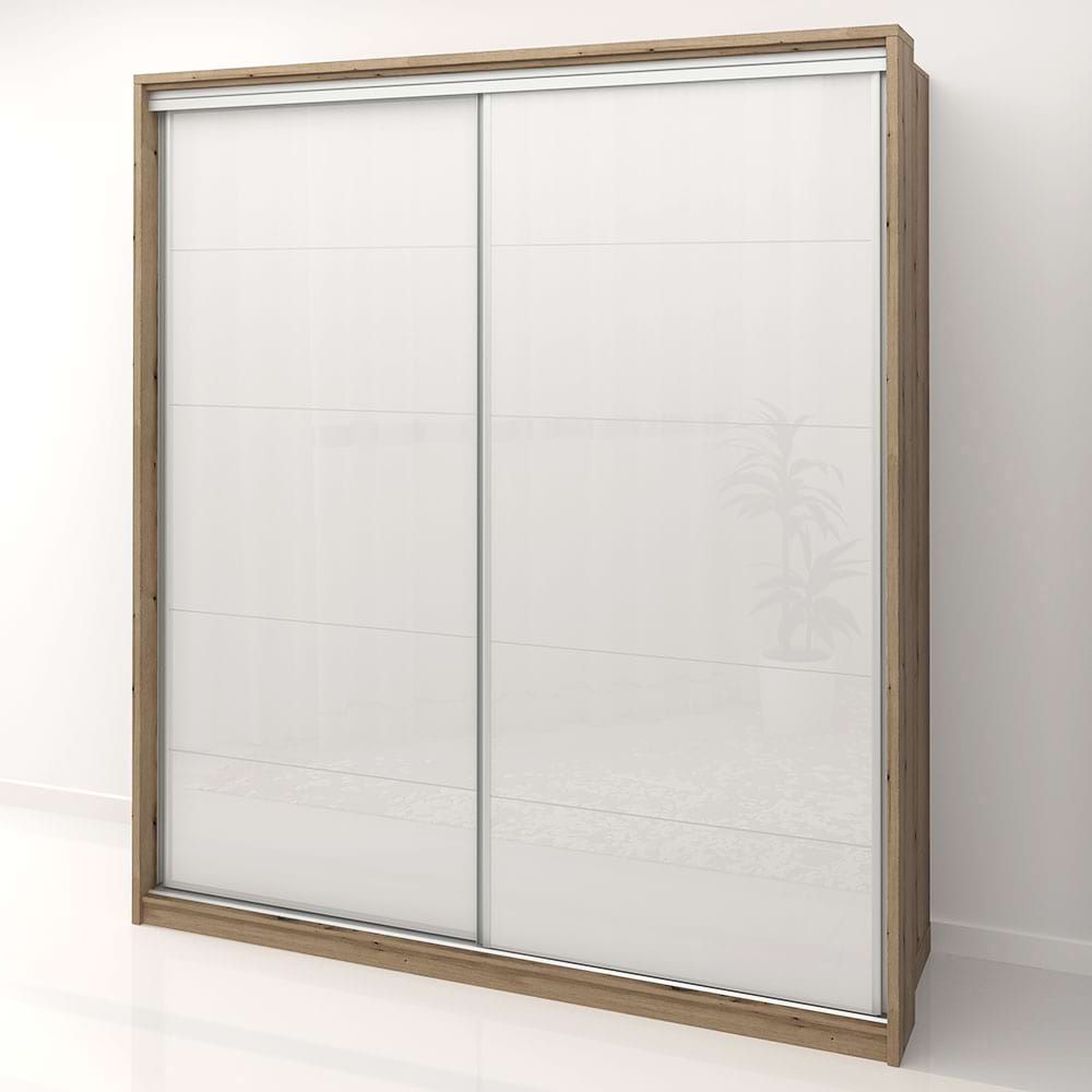 Dulap haine usi glisante PRIMAVERA 205, H225, Stejar, Alb Lucios