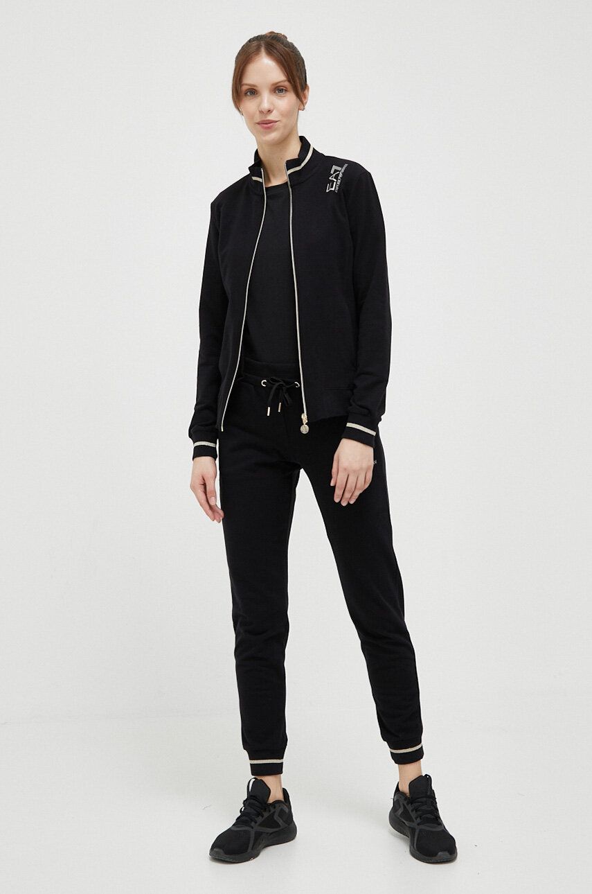EA7 Emporio Armani trening femei, culoarea negru. Compleu de trening din colectia EA7 Emporio Armani. Model confectionat din tricot elastic. Model cu un finisaj moale la interior. #NAME?
