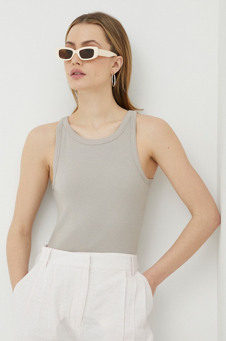 Gestuz top Drew femei, culoarea bej 10905929. Top din colectia Gestuz. Model confectionat din tricot cu nervuri. Material flexibil, subliniind silueta. – Un produs din seria Investing in better cotton?. Better Cotton este cea mai importanta initiativa de sustenabilitate a bumbacului din lume, cu misiunea de a ajuta comunitatile de bumbac sa supravietuiasca si sa prospere, protejind si resta