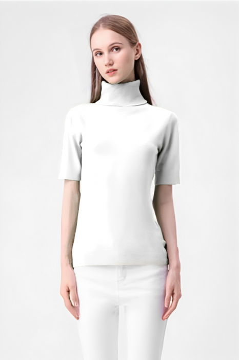 Helanca pulover cu maneca scurta si guler inalt, alb