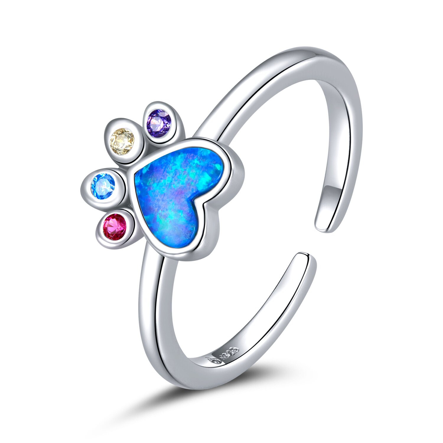 Inel reglabil din argint Colorful Paw. Mărimi Material: Argint 925 Placaj: Rodiu Dimensiuni element central: 8.04 X 7.78 mm Piatra: Zirconiu Tip: Reglabil