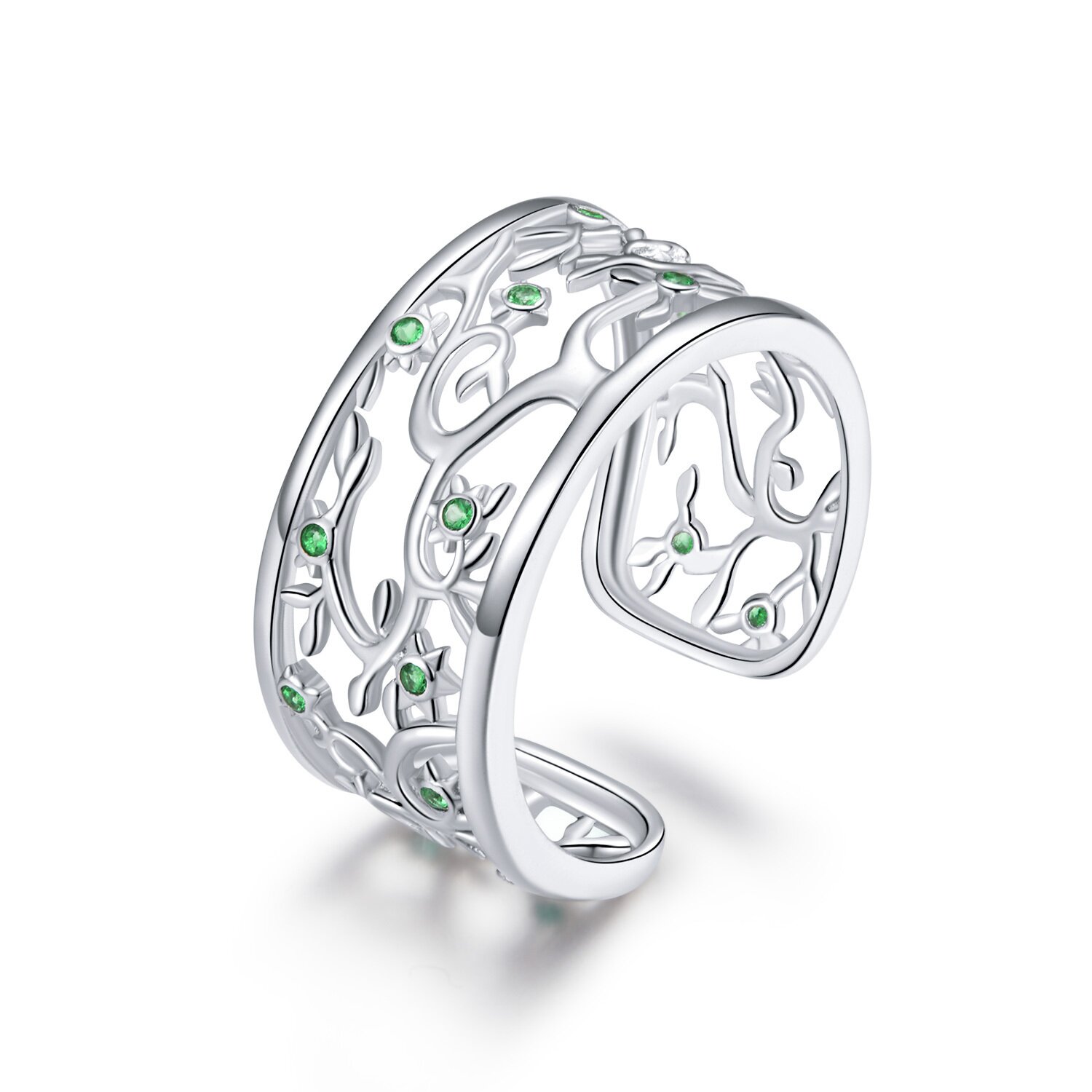 Inel reglabil din argint Cutout Tree. Material: Argint 925 Placaj: Rodiu Piatra: Zirconiu Tip: Reglabil Latime inel: 9 mm Greutate: 2, 22 g