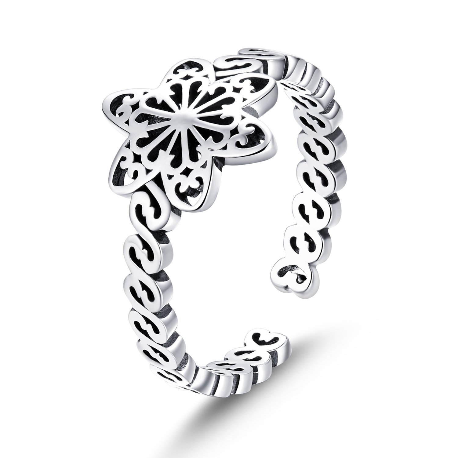 Inel reglabil din argint Winter Snowflake. Mărimi Material: Argint 925 Placaj: Rodiu Dimensiuni element central: 10.55 mm Petre: Fara pietre