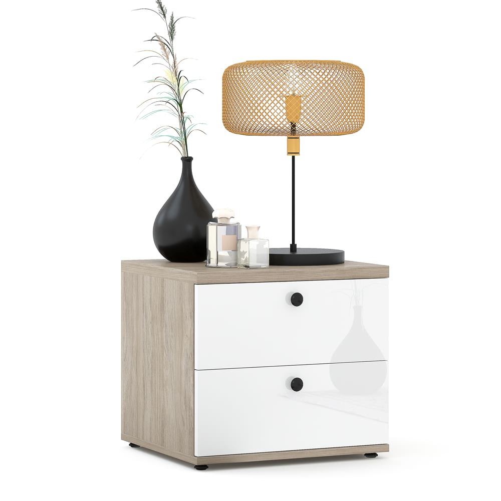 Noptiera PRIMAVERA 2 sertare, Oak, Alb Gloss.Descopera cele mai bune oferte la mobilier pentru casa ta! De la canapele confortabile si paturi elegante pana la mese moderne si dulapuri spatioase, avem tot ce iti trebuie pentru un camin perfect. Alege stilul care ti se potriveste si bucura-te de calitate la preturi avantajoase!