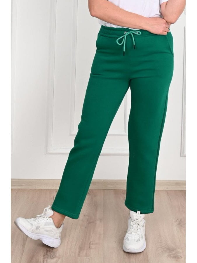Pantaloni Dama Marimi Mari Sport Bumbac Vatuit Verde Drepti cu Buzunare 4XL (48)