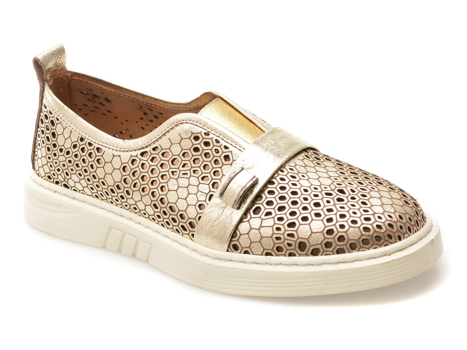 Pantofi dama ERISMA aurii, 123048, din piele naturala. Pantofi ERISMA aurii, 123048, din piele naturala , Pentru: Femei , Brand: ERISMA , culoare: Auriu , Material exterior: Piele naturala , Material talpa: Cauciuc termoplastic , Tip inchidere: Slip-on . Livrare gratuita pentru comenzile de peste 299 RON acasa si in locker. Retur gratuit de acasa sau in locker.