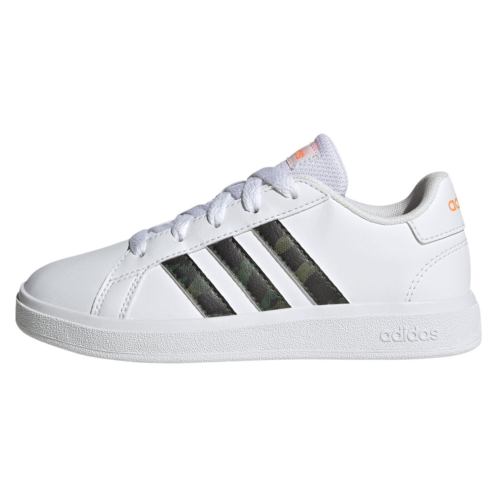 Pantofi sport ADIDAS pentru copii GRAND COURT 2.0 K – IF2884. Pantofii sport adidas pentru copii GRAND COURT 2.0 K din colectia Tennis gama Performance au un aspect elegant si sunt inspirati de incaltamintea de tenis a anilor '70. – Caramb din material sintetic. – Partea superioara contine aproximativ 50% materiale reciclate. – Talpa exterioara aderenta din cauciuc.