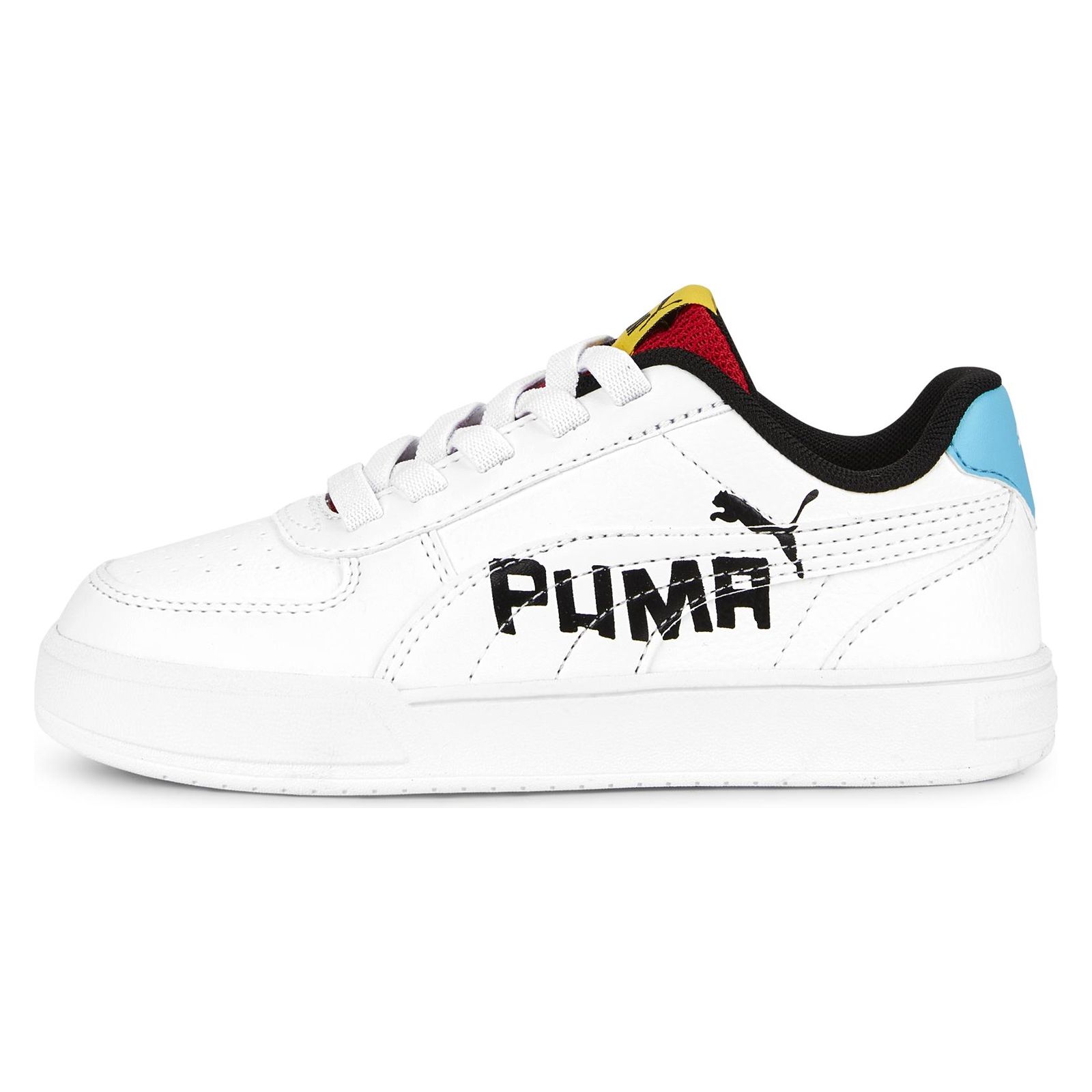 Pantofi sport PUMA pentru copii CAVEN BRAND LOVE PS – 38973301. Pantofii sport Puma pentru copii CAVEN BRAND LOVE PS au un design inspirat de incaltamintea de baschet a anilor '80 cu perforatii pe bombeu pentru ventilare si detalii multicolore. – Exterior din material sintetic. – Brant SoftFoam+asigura confort si amortizeaza socurile. – Talpa exterioara care nu lasa urme (Non-marking).