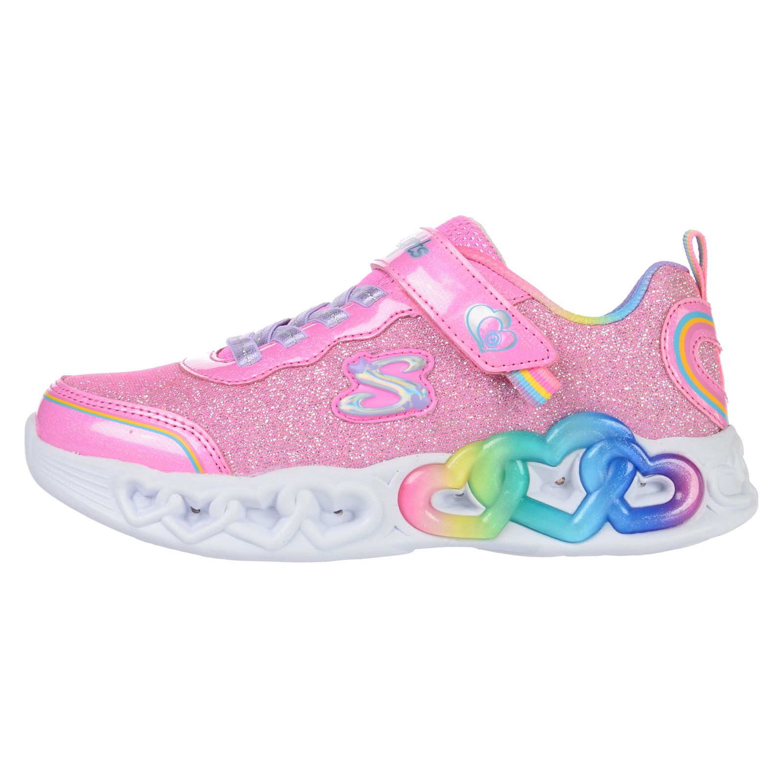 Pantofi sport SKECHERS pentru copii INFINITE HEART LIGHT – 303751LPKMT. Pantofii sport Skechers pentru copii INFINITE HEART LIGHT sunt adorabili prin abundenta de culori si luminitele care se aprind la fiecare pas. – Bombeu intarit. – Sireturi elastice pentru incaltare rapida. – Bareta cu velcro. – Talpa intermediara cu luminite detalii in relief si amortizare. – Talpa exterioara flexibila si aderenta.