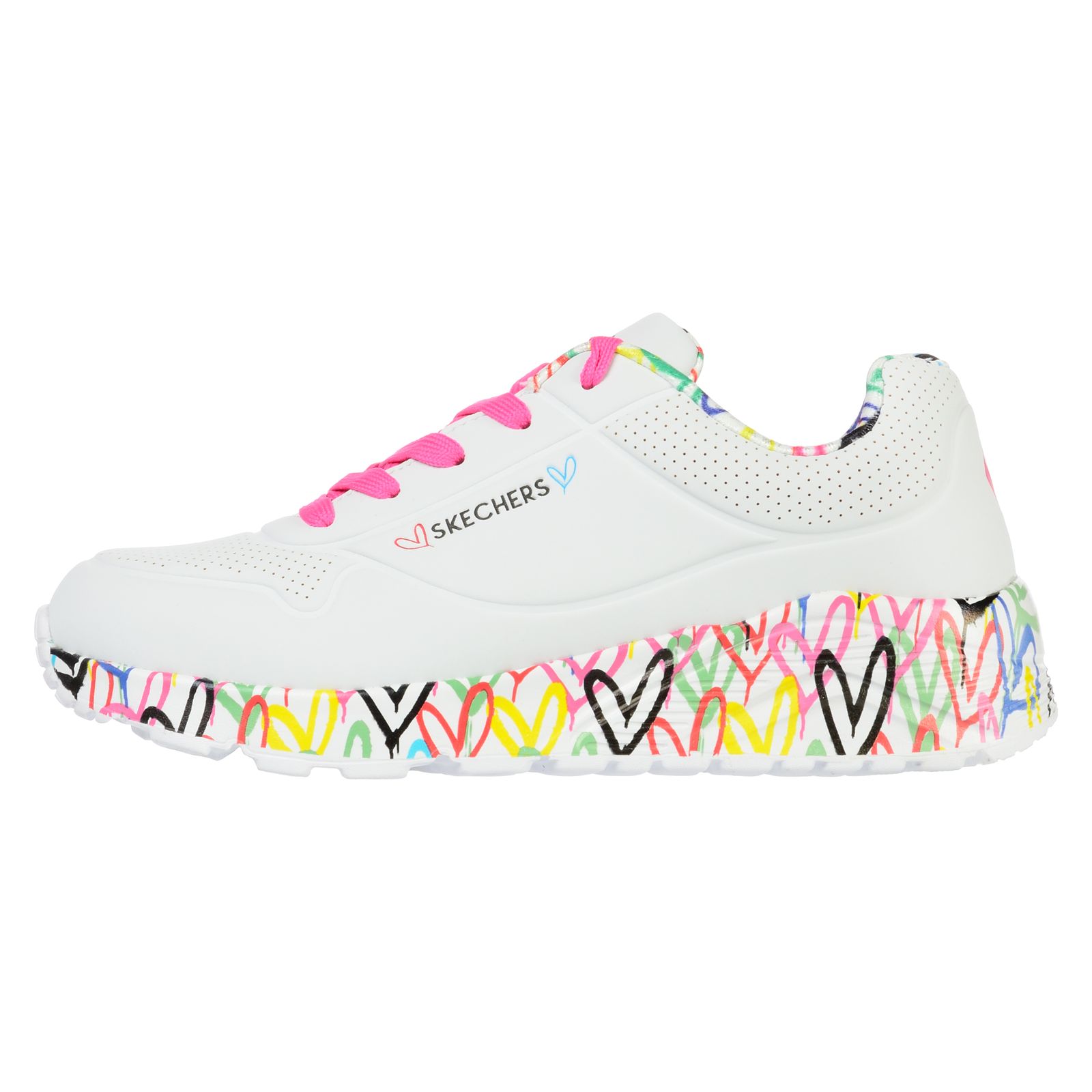 Pantofi sport SKECHERS pentru copii UNO LITE – LOVEY LUV – 314976LWMLT. Pantofii sport Skechers pentru copiiÿUNO LITE – LOVEY LUV vin cu un imprimeu special care topeste multe inimi la nivel mondial.ÿ- Caramb din material sintetic cu perforatii. – Brant cu spumaÿcu memorie. – Talpaÿintermediaraÿcu amortizare. – Talpa exterioaraÿflexibilaÿsi aderenta.