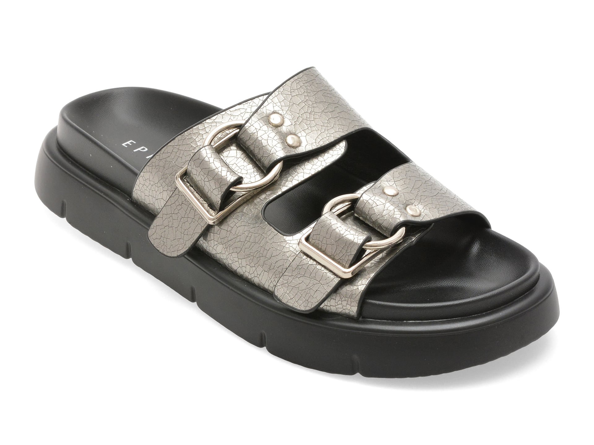 Papuci EPICA argintii, WC60009, din piele naturala. Papuci EPICA argintii, WC60009, din piele naturala , Pentru: Femei , Brand: Epica , culoare: Argintiu , Material exterior: Piele naturala , Material talpa: Cauciuc termoplastic , Tip inchidere: Slip-on . Livrare gratuita pentru comenzile de peste 299 RON acasa si in locker. Retur gratuit de acasa sau in locker.