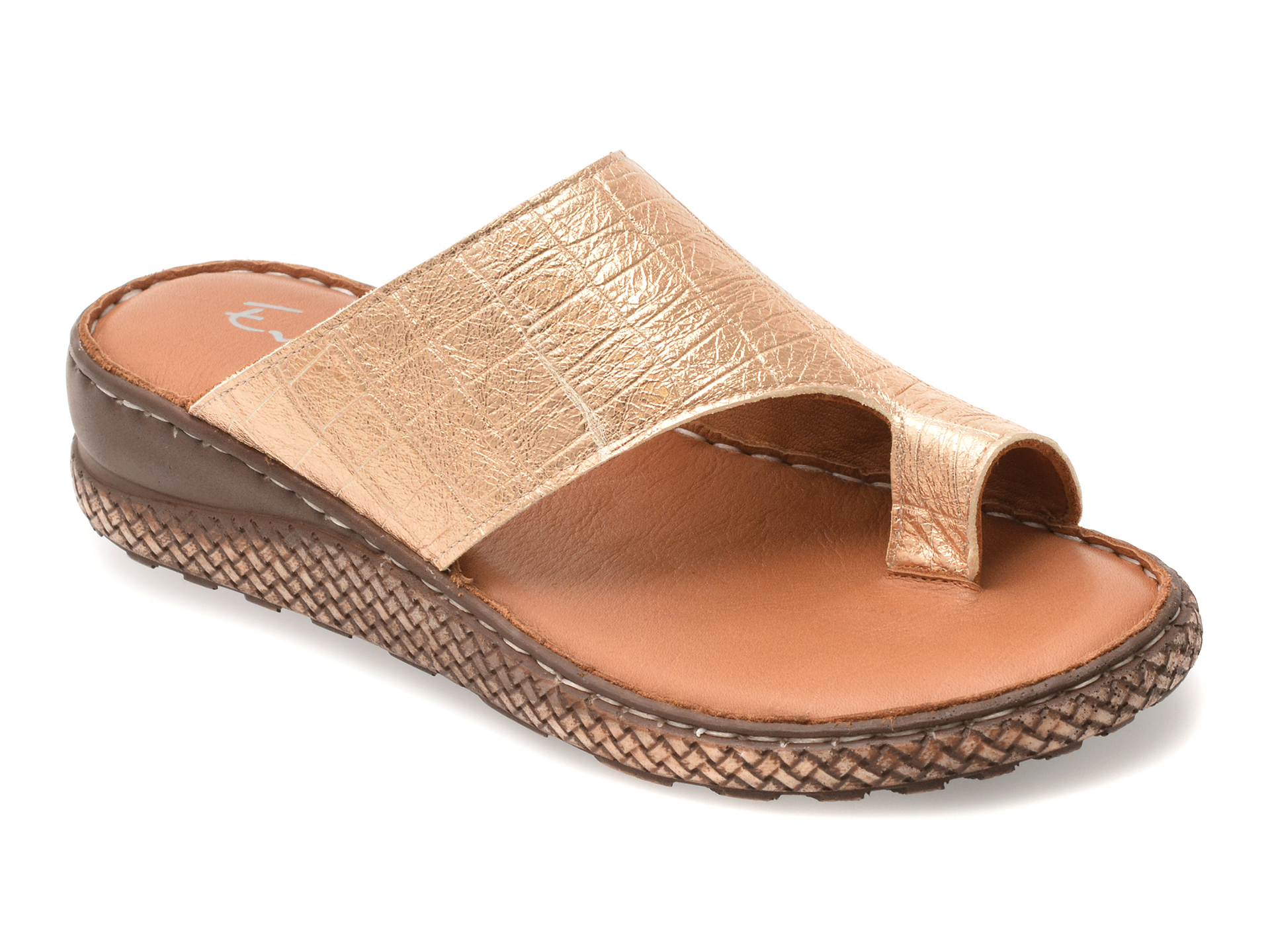 Papuci EVIDA aurii, EV2875, din piele naturala