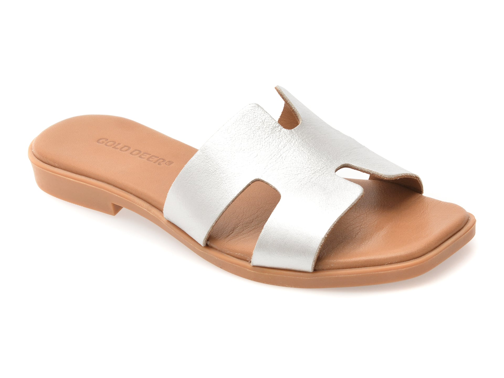 Papuci GOLD DEER argintii, 13175, din piele naturala.Papuci GOLD DEER argintii, 13175, din piele naturala , Pentru: Femei , Brand: GOLD DEER , culoare: Argintiu , Material exterior: Piele naturala , Material talpa: pvc , Tip inchidere: Slip-on . Livrare gratuita pentru comenzile de peste 299 RON acasa si in locker. Retur gratuit de acasa sau in locker.