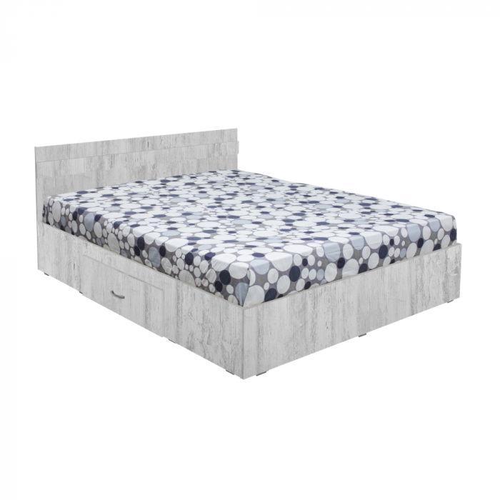 Pat ALMA, cu sertar, pin antichizat, 140×200 cm