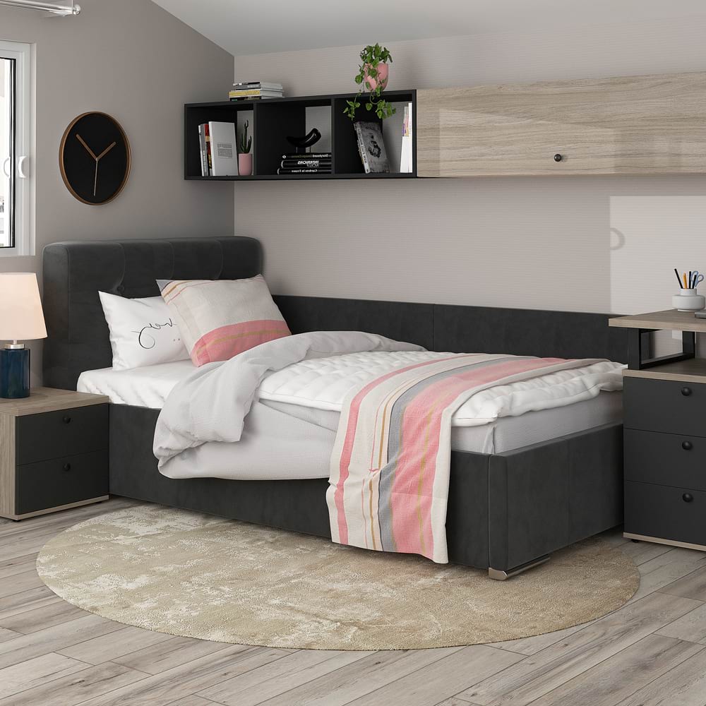 Pat de colt copii GEORGIA Clasic, 120×200, H107, somiera, catifea Gri.Descopera cele mai bune oferte la mobilier pentru casa ta! De la canapele confortabile si paturi elegante pana la mese moderne si dulapuri spatioase, avem tot ce iti trebuie pentru un camin perfect. Alege stilul care ti se potriveste si bucura-te de calitate la preturi avantajoase!