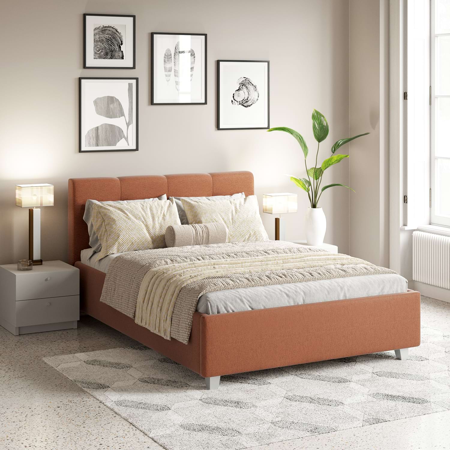 Pat tapitat ARISA, 180×200, suport saltea, stofa Caramizie