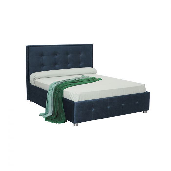 Pat tapitat LUXOR, 160×200 cm, cu sezut rabatabil, spatiu depozitare, albastru inchis