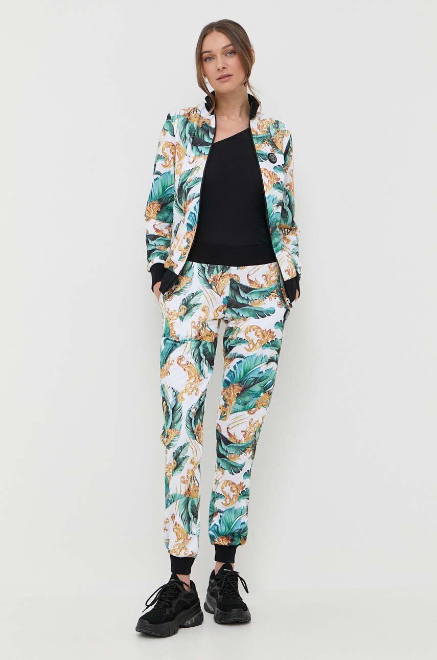 PLEIN SPORT trening femei. Compleu de trening din colecaia PLEIN SPORT confecaionat din material ornamentat. Model realizat din material extrem de placut la atingere. – Fason drept. – Incheiere cu fermoar. – Guler ridicat. – Maneca lunga. – Buzunare oblice. – Finisaj din manseta. – In talie banda larga, elastica. – Lungimea: 64 cm. – Lungimea manecii. 63 cm. – Latimea la subrat: 45 cm. – Latimea in talie: 34 cm. – Lati