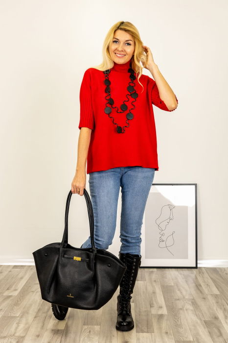 Pulover versatil cu maneci scurte ribbed si guler inalt, din vascoza, rosu
