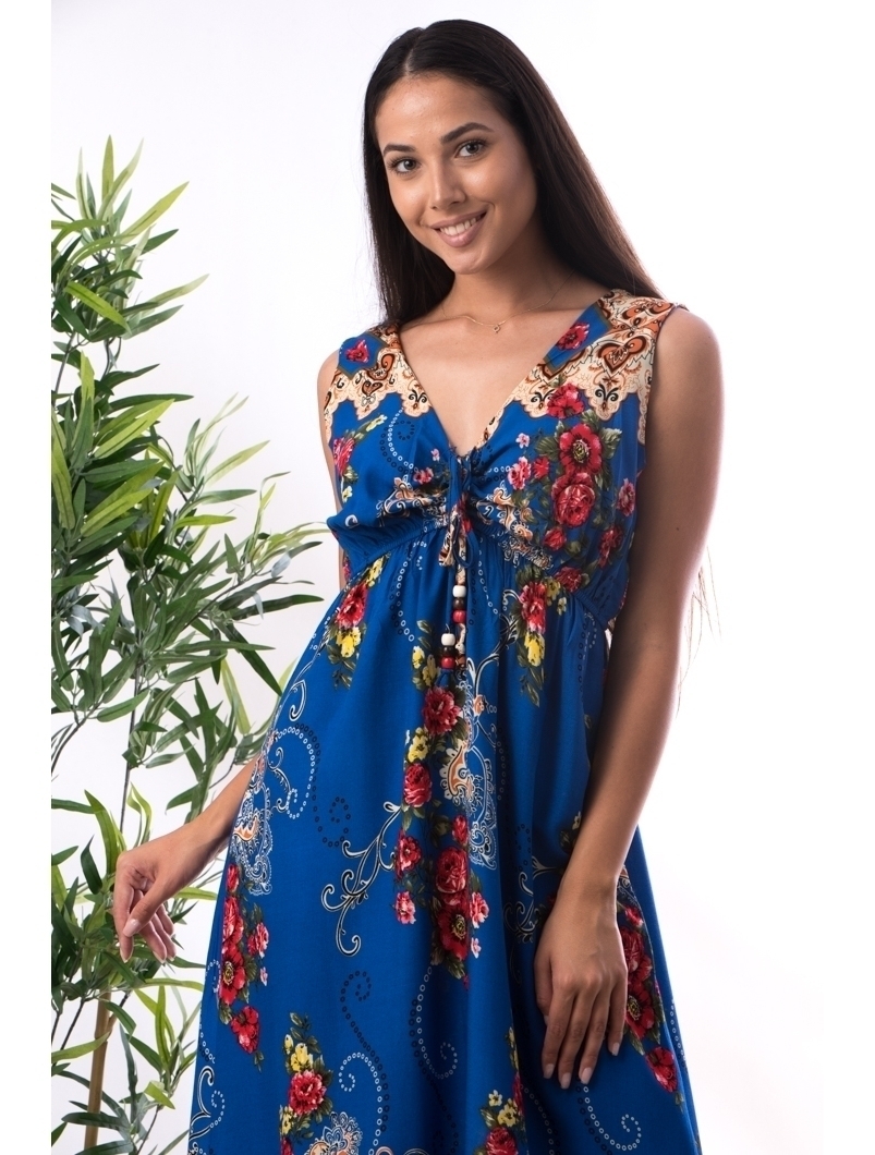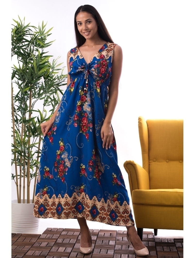 Rochie Dama Jemmysa Albastru Rochie Lunga Dama Colectia By You culoare: albastru-are decolteu in v si snur- nu are maneci – are imprimeu floral- Fabri