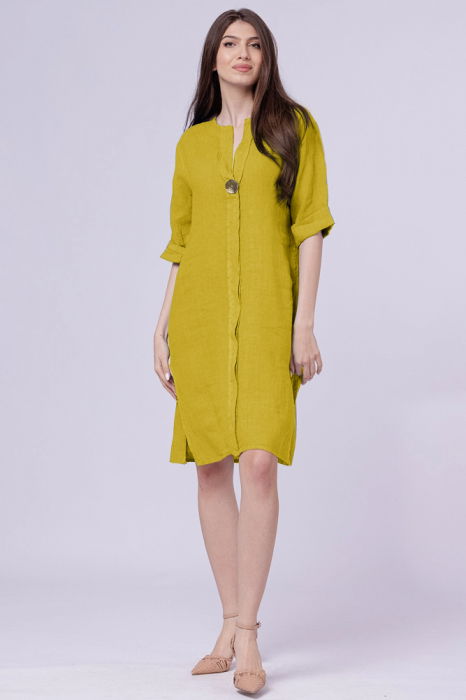 Rochie tunica din in galbena, cu nasture metalic decorativ