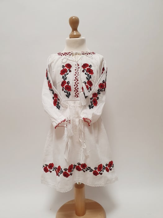Rochita Traditionala cu broderie cu Maci.Rochita Traditionala. Rochite traditionale pentru fetite cu broderie. Varietati de modele rochii traditionale. Lungime scurte iar maneca este 3 4 .